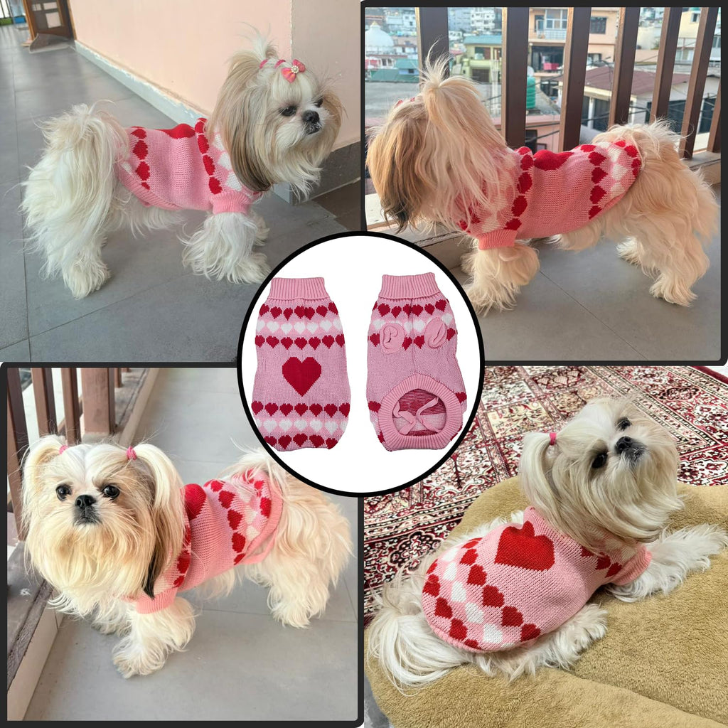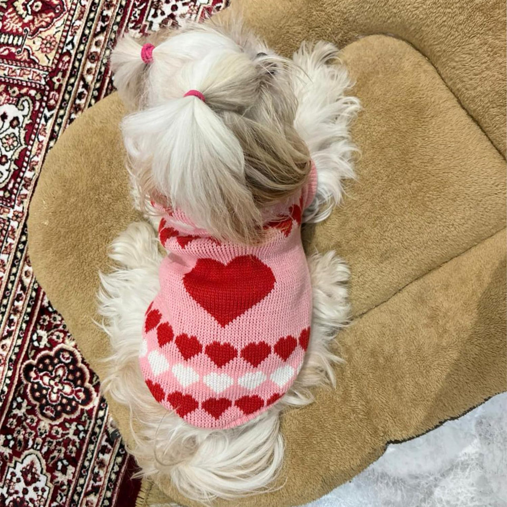 A warm and adorable winter sweater featuring a Cute heart pattern, designed to keep your dog cozy and stylish in cold weather.