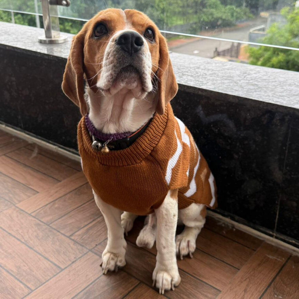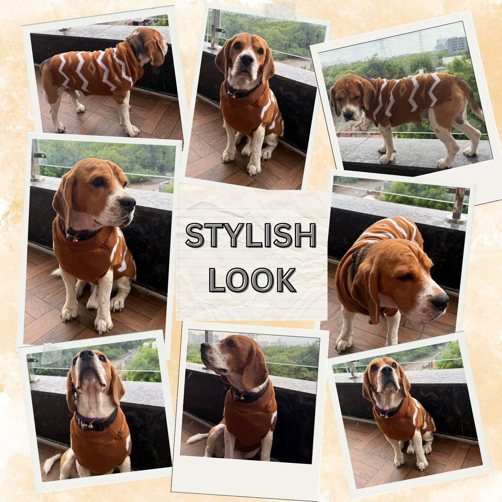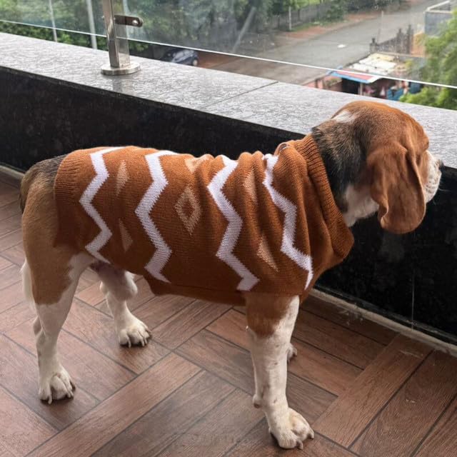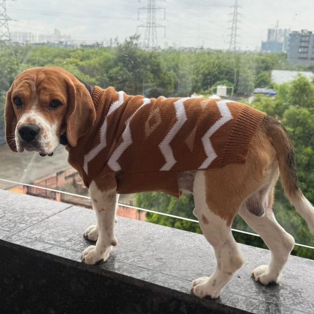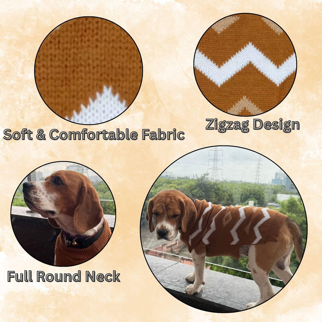 • Stylish & Functional Design: Featuring a chic brown color with a white zigzag pattern, this sweater combines style and practicality, ensuring your pet looks fashionable while staying warm.