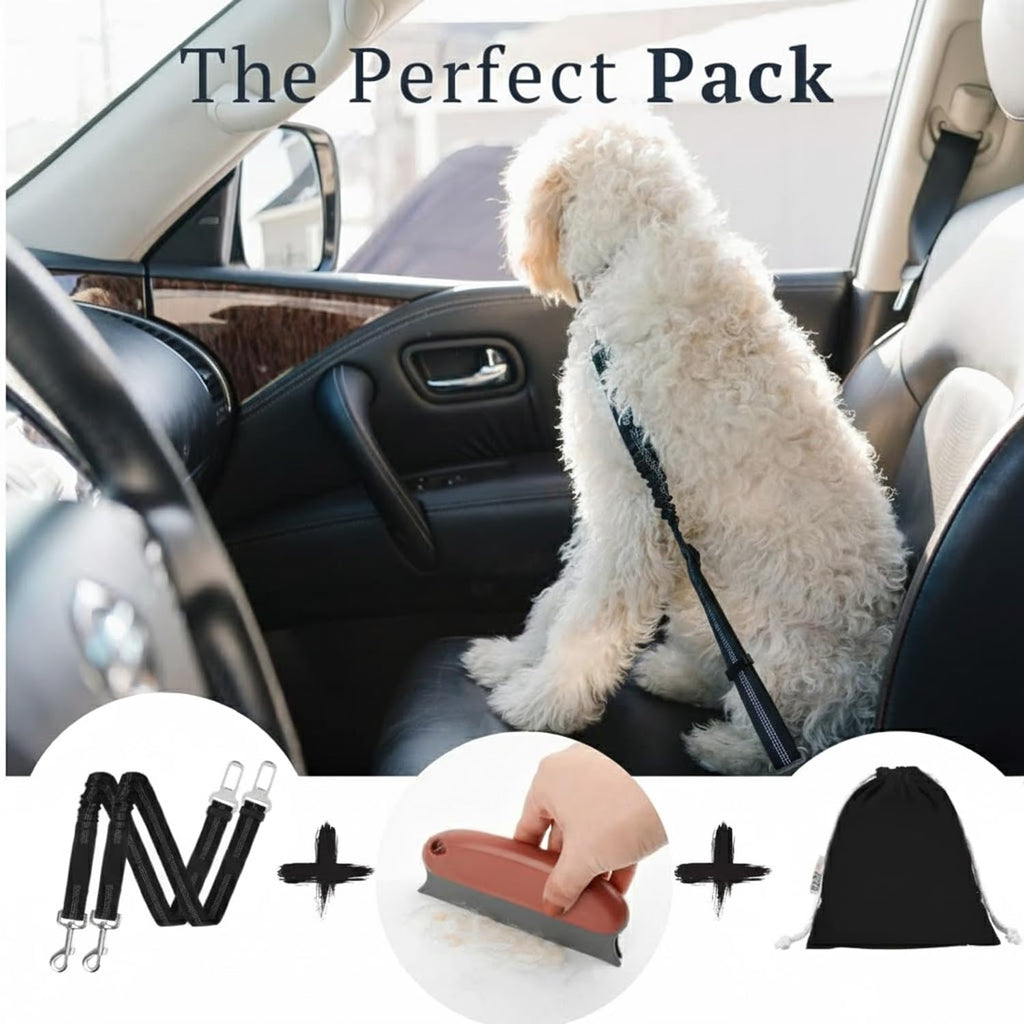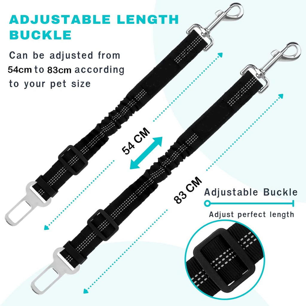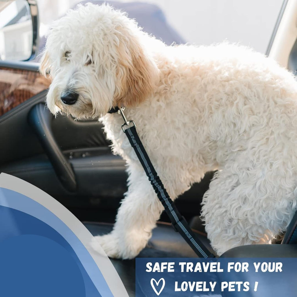 Designed to reduce distractions and prevent sudden movements, this adjustable dog car seat belt easily attaches to most vehicle seat belts and dog harnesses.