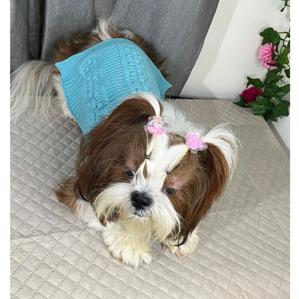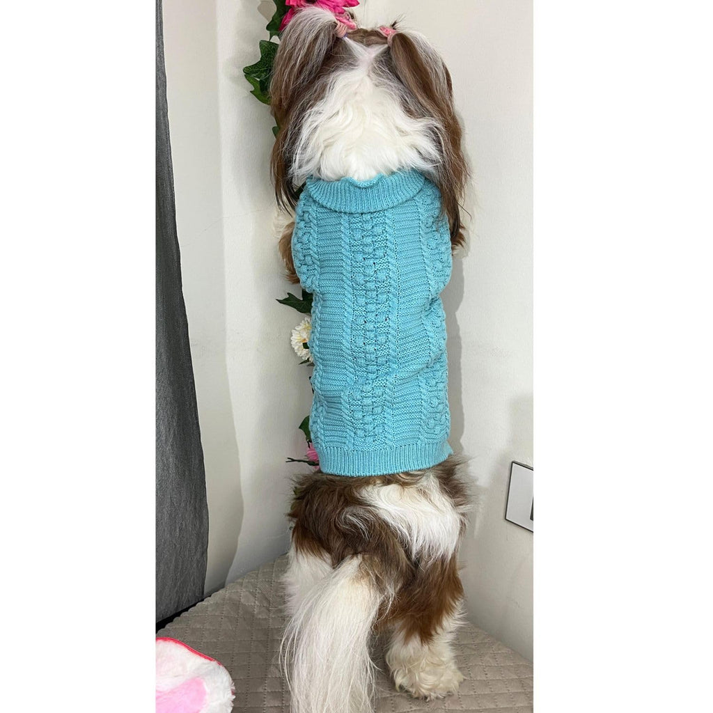 This soft woolen pet coat is ideal for cold weather protection, keeping your furry friend cozy indoors and outdoors. The Sky Blue color adds a stylish, elegant touch — perfect for small breeds like Shih Tzu, Chihuahua, Pomeranian, and Persian Cats.