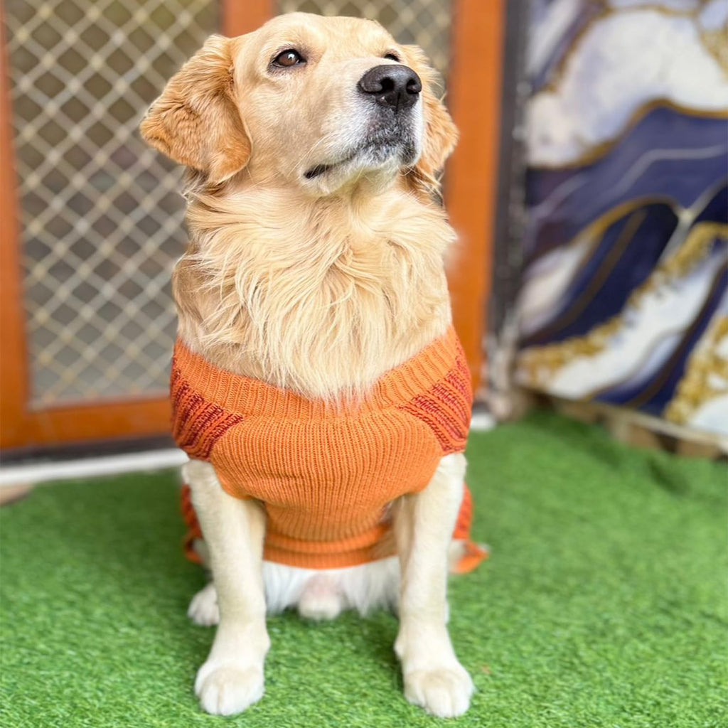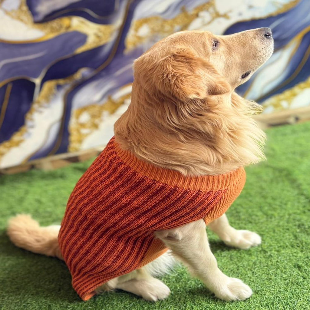 A warm and stylish orange knitted sweater designed to keep your dog cozy during cold weather. Soft, breathable fabric ensures comfort while adding a bright pop of color.